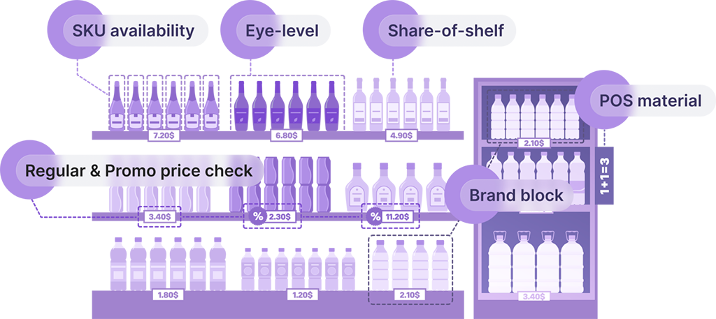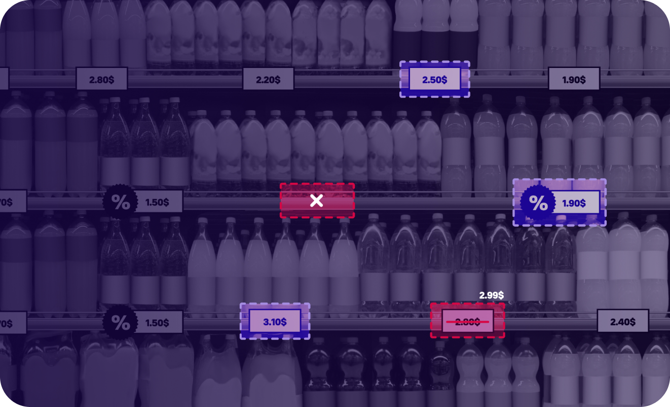 Ensure correct prices for your products in stores. Control correct execution of promo prices. Receive real-time notifications on missing price tags, incorrect pricing. Simplify the price check process for your field teams teams