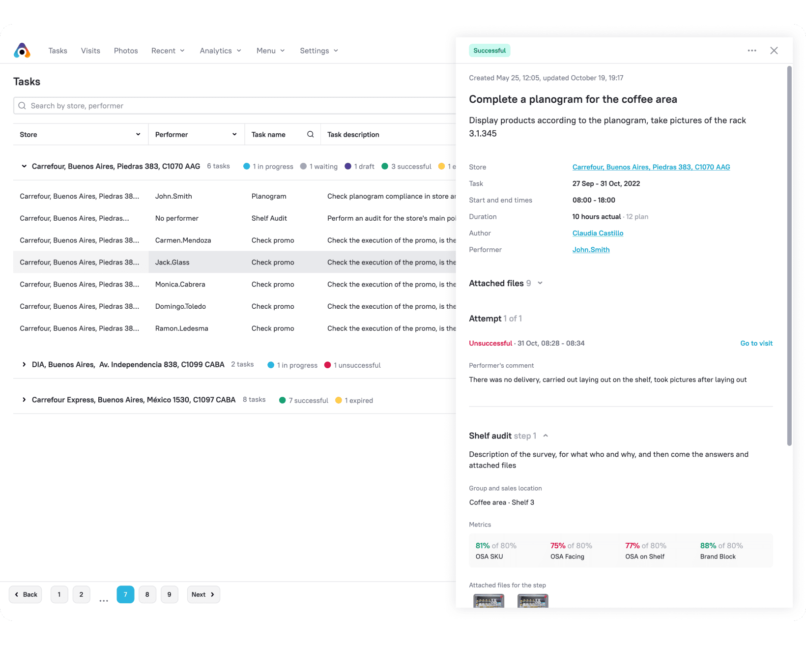 Monitoree el desempeño del equipo en la tienda y revise las confirmaciones fotográficas de la ejecución del cumplimiento del planograma en las tiendas.