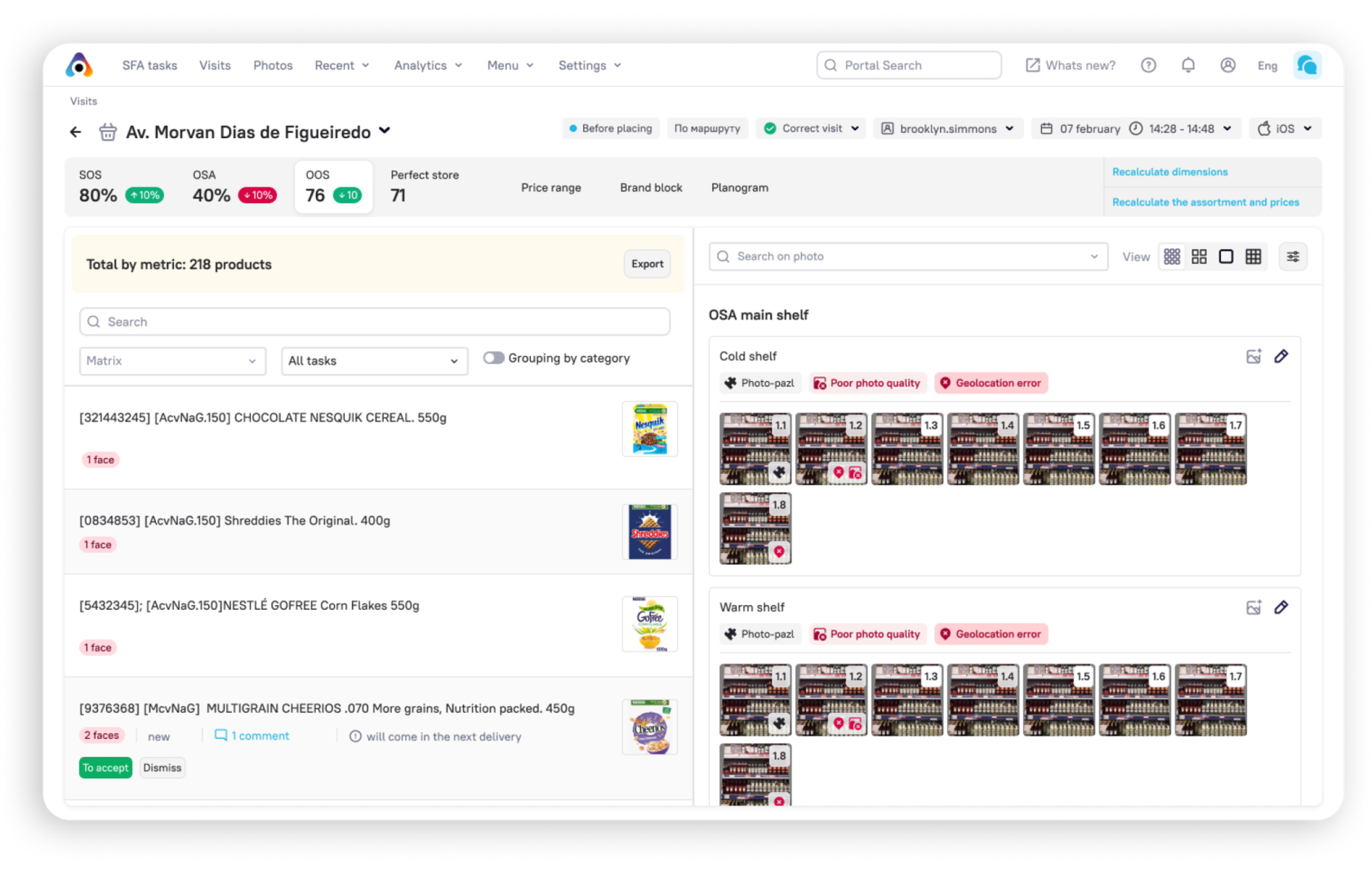 - Encuentre los motivos de los casos por falta de existencias en los estantes con confirmaciones fotográficas.