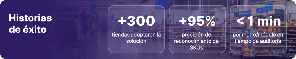 - Monitoreo del cumplimiento de planogramas: Se logró con una precisión de reconocimiento de SKU superior al 95%, asegurando que los productos estuvieran correctamente colocados en las estanterías.