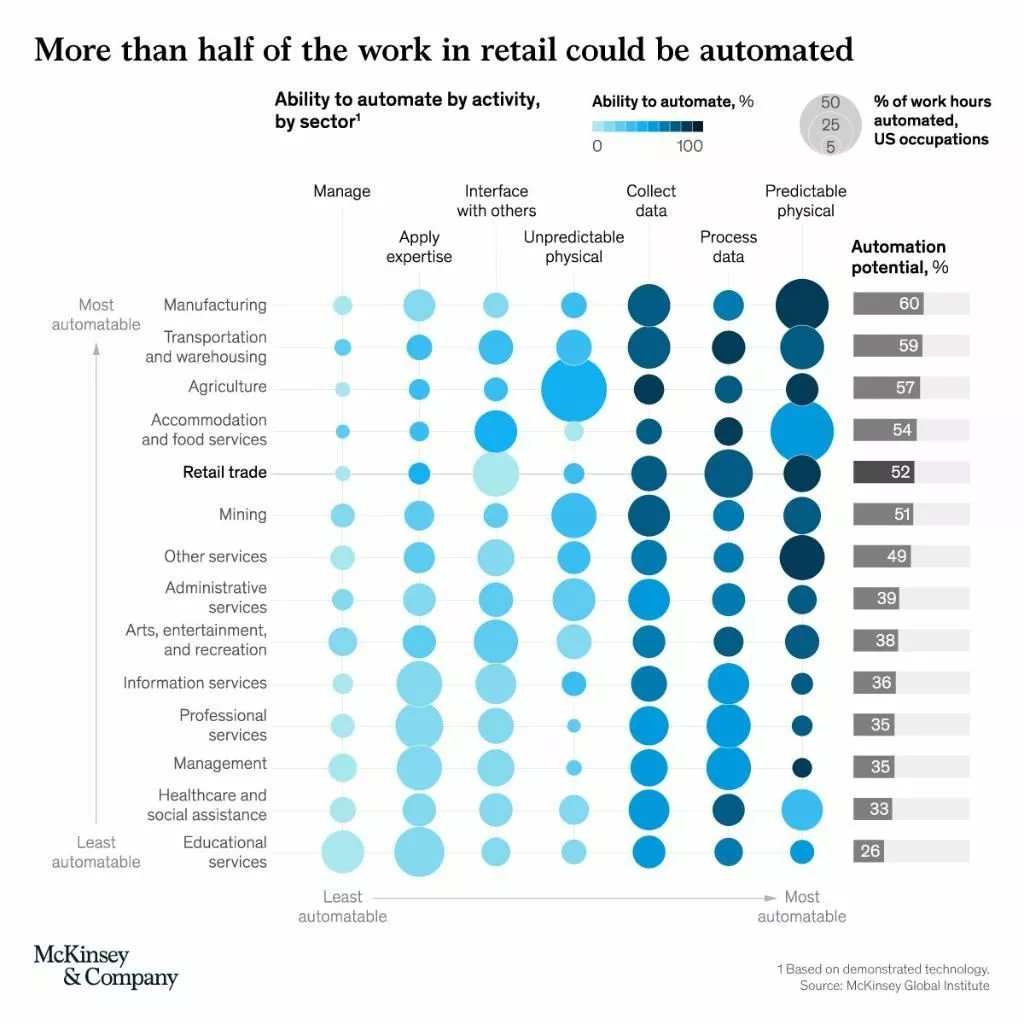 According to latest research from McKinsey, 52 percent of retail activities could be automated, at least partially.