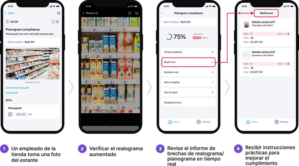 Com a tecnologia RI (image recognition) da Ailet, as imagens dos produtos podem ser convertidas em dados estratégicos. Os sistemas de visão mecânica podem analisar as fotos das prateleiras para detectar erros na disposição dos produtos e gerar relatórios detalhados.