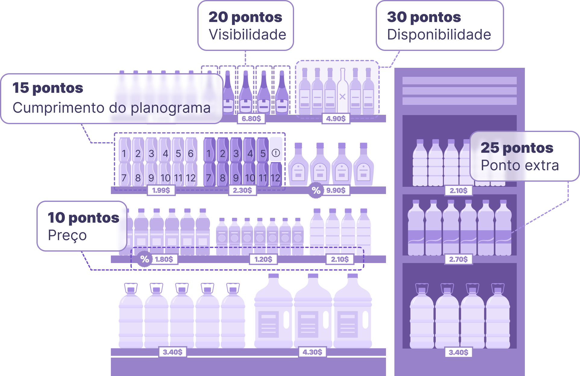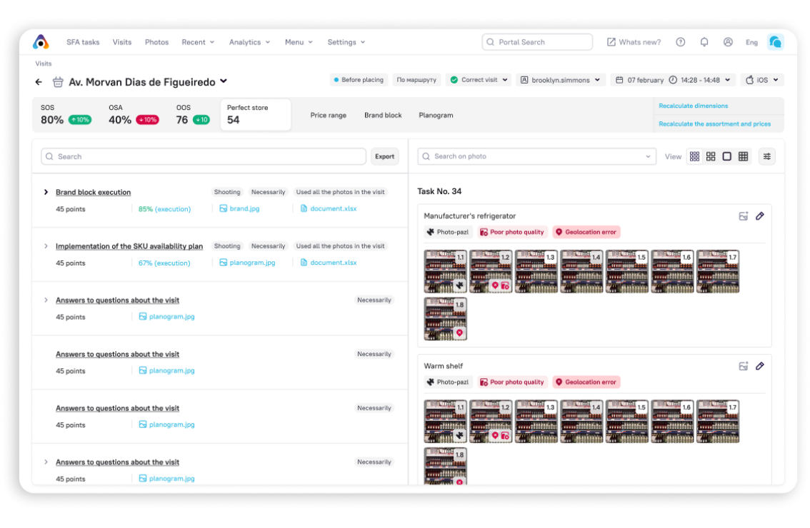 - pontuações automáticas da Perfect Store e cálculos de KPI on-line