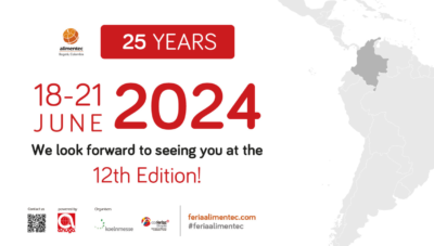 Alimentec, um evento líder no setor de Alimentos, Bebidas, HORECA (hotéis, restaurantes e serviços de catering), varejo na América Latina e no Caribe, lançará sua 25A edição na Colômbia. Espera-se que atraia mais de 20.000 participantes, o evento combina seis experiências distintas: HORECA Talks, Food Innovation Summit, Cooking Show, Drink Trends, Bake & Arts e um evento VIP.