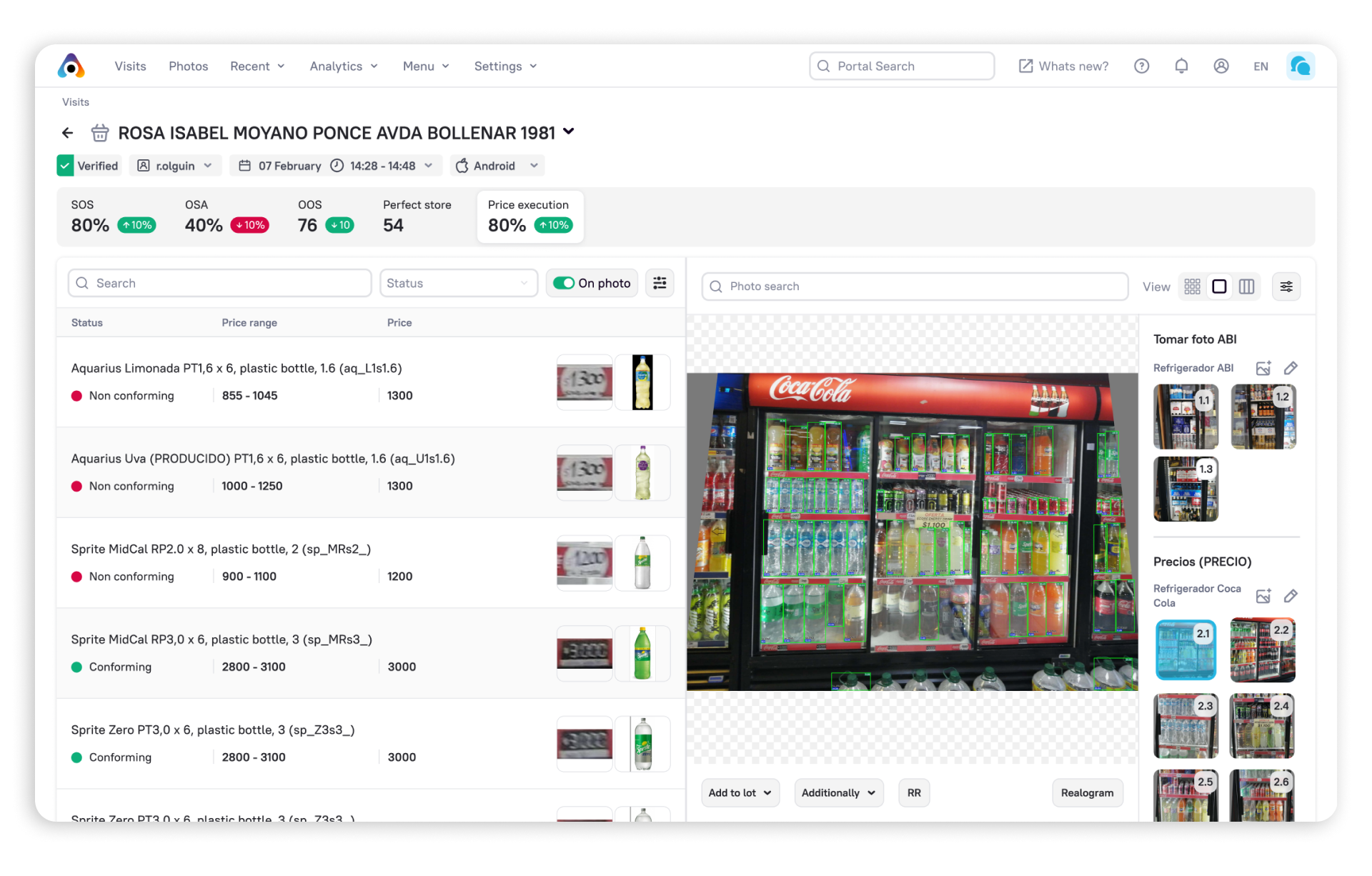 - acesse a localização das etiquetas de preços nas prateleiras com confirmações fotográficas das lojas