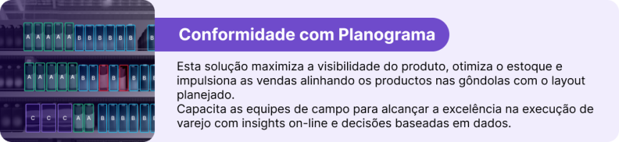 - Monitorar a conformidade do planograma com mais de 95% de precisão no reconhecimento de SKU, garantindo que os produtos estivessem corretamente posicionados nas prateleiras.